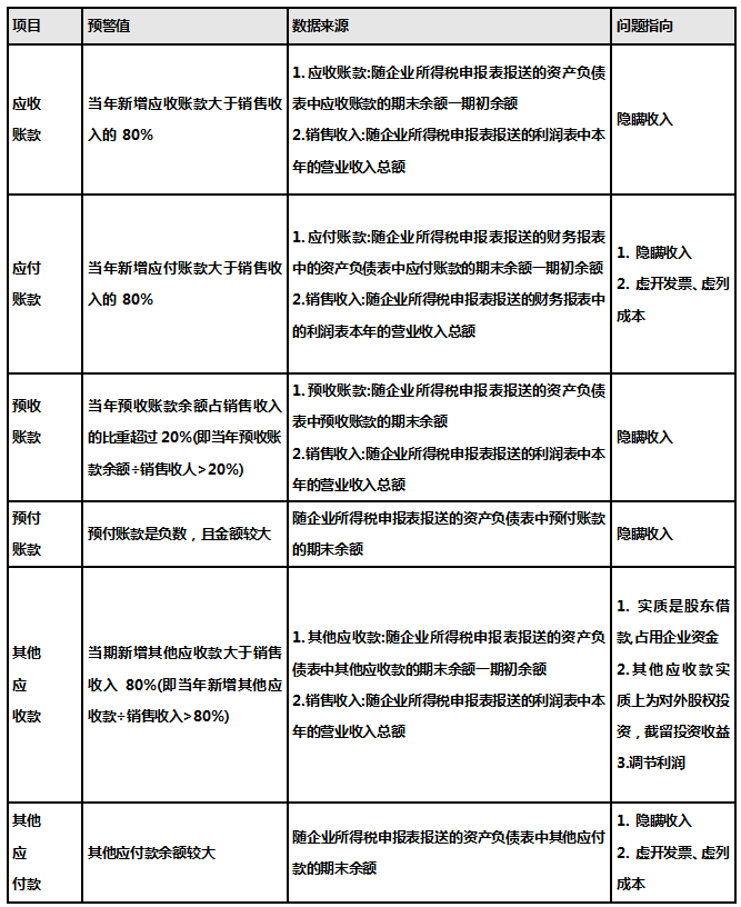 企业常常用往来账户隐匿收入、转移利润、虚列成本,以达到偷税的目的,往来账户也由此成为税务机关的重点稽查范围。企业可根据相关预警指标进行自查,以规范账户核算和涉税处理,从而防范风险。
