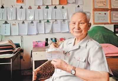 “为了多省一点钱,他的衣服鞋子都要我亲手做,就连头发也让我剪。有一回,我连夜给他做了一双鞋,结果他却送给了帮扶对象。”老伴刘穆桂说,外出募捐的车旅费、伙食费,也是肖老自掏腰包,一杯水、几个馒头就是一顿饭,能走路的尽量不搭车。